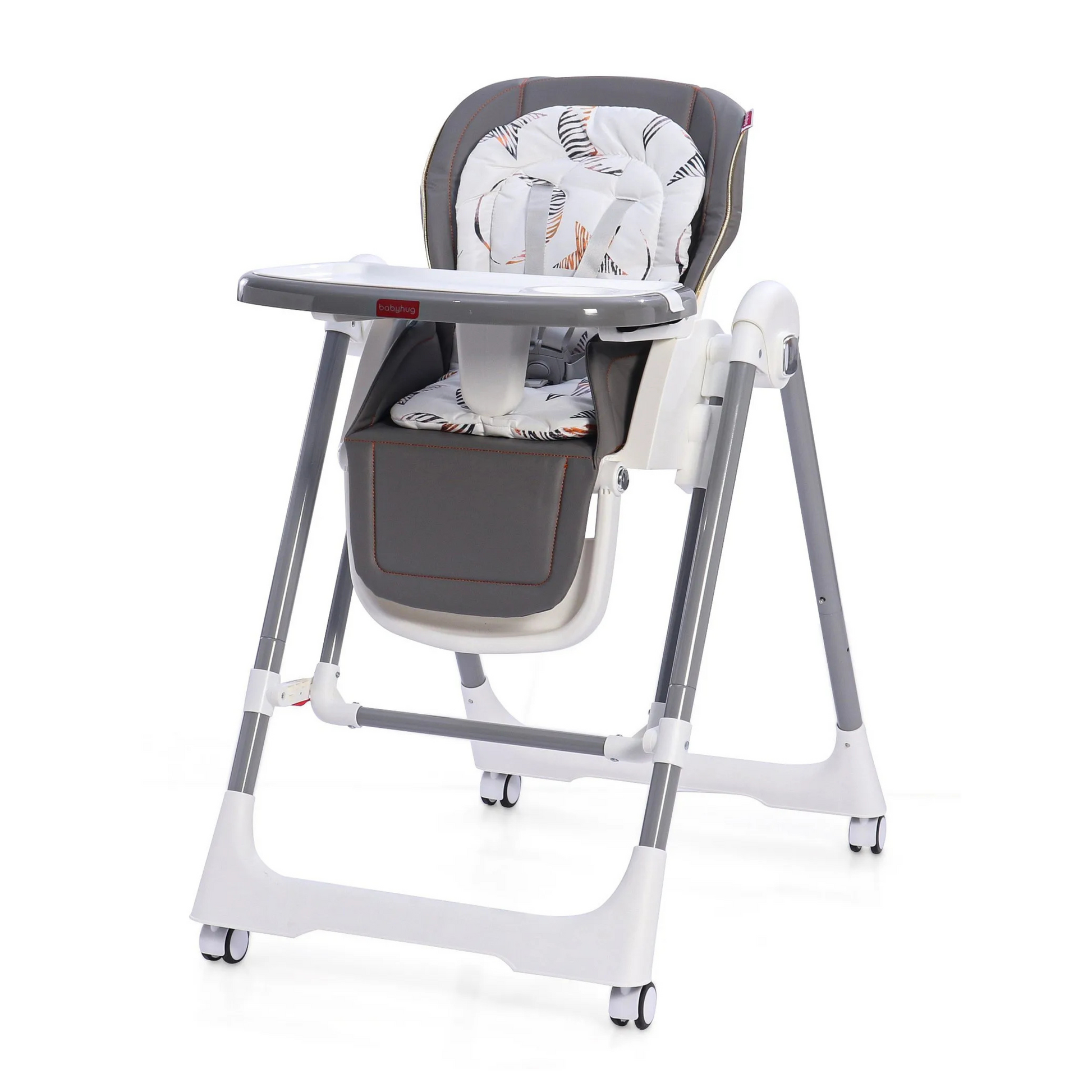Designed for growing children from 6 months to 5 years, the Apple Baby Smart 3-in-1 High Chair combines versatility and comfort. Its adjustable height ensures a perfect fit at any table, while the dual tray offers convenience for feeding and play. The reclinable backrest and footrest provide ergonomic support, adapting as your child grows. The integrated swing adds soothing motion, making mealtime more enjoyable. Crafted in a neutral grey, this high chair blends seamlessly with any décor, offering a practical and durable solution for your child's feeding needs.