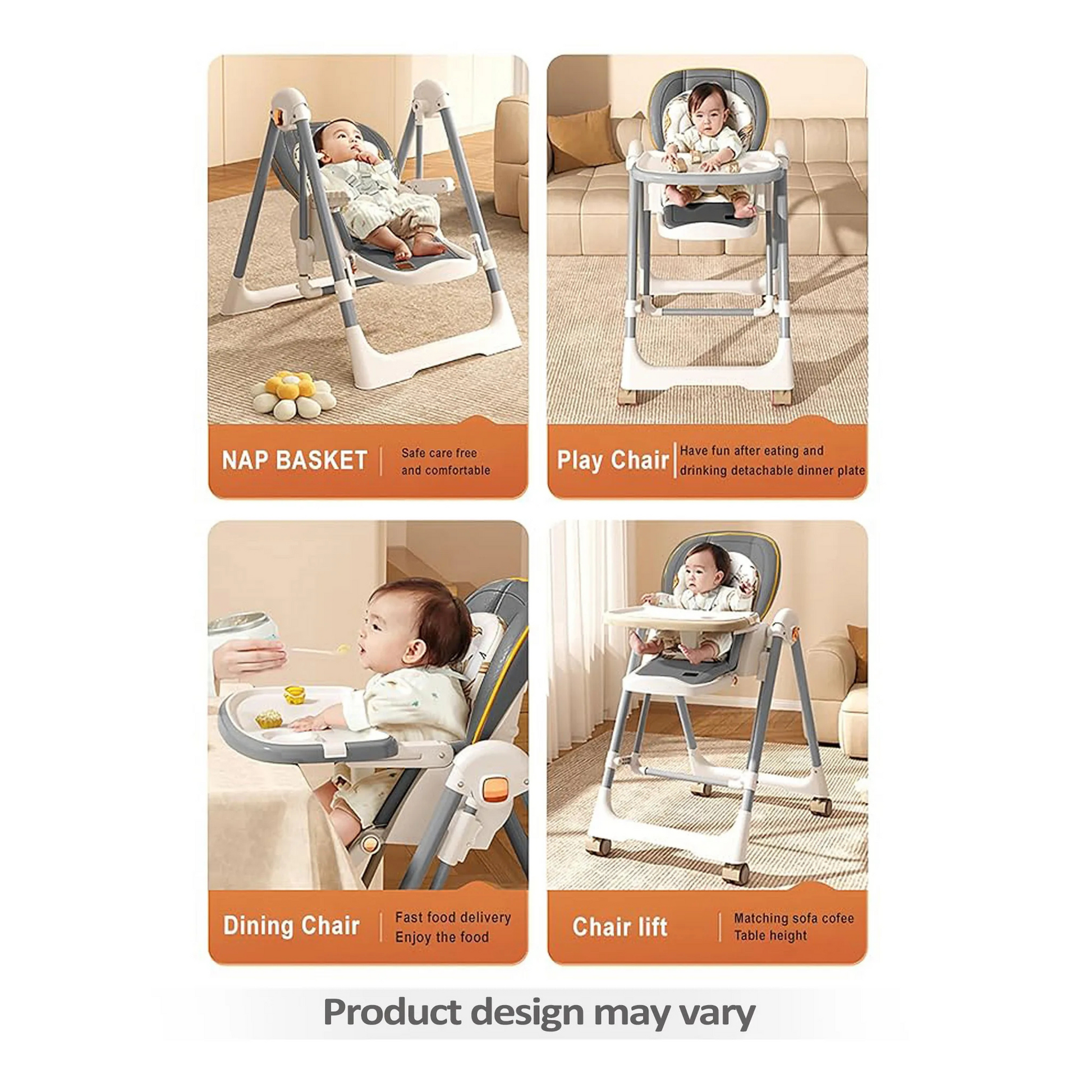 Apple Baby Smart 3-in-1 High Chair with Swing for Baby, Adjustable Height, Dual Tray, Reclinable Backrest & Footrest Feeding Chair for 6 Months - 5 Years Kids - Grey