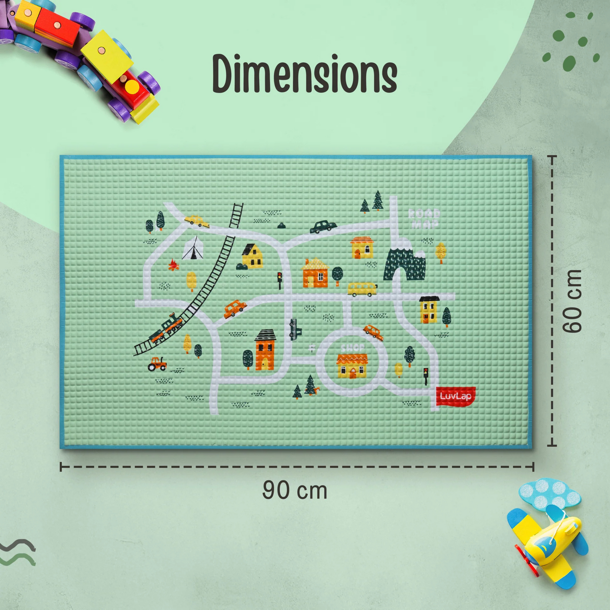 LuvLap Air - Filled Waterproof Multi - Functional baby play mat for floor - Wheelie, Baby crawling mat, floor mat for kids, Bed protector, Foldable, Lightweight & Big size 90cmx60cm, Non Toxic, Non Slip