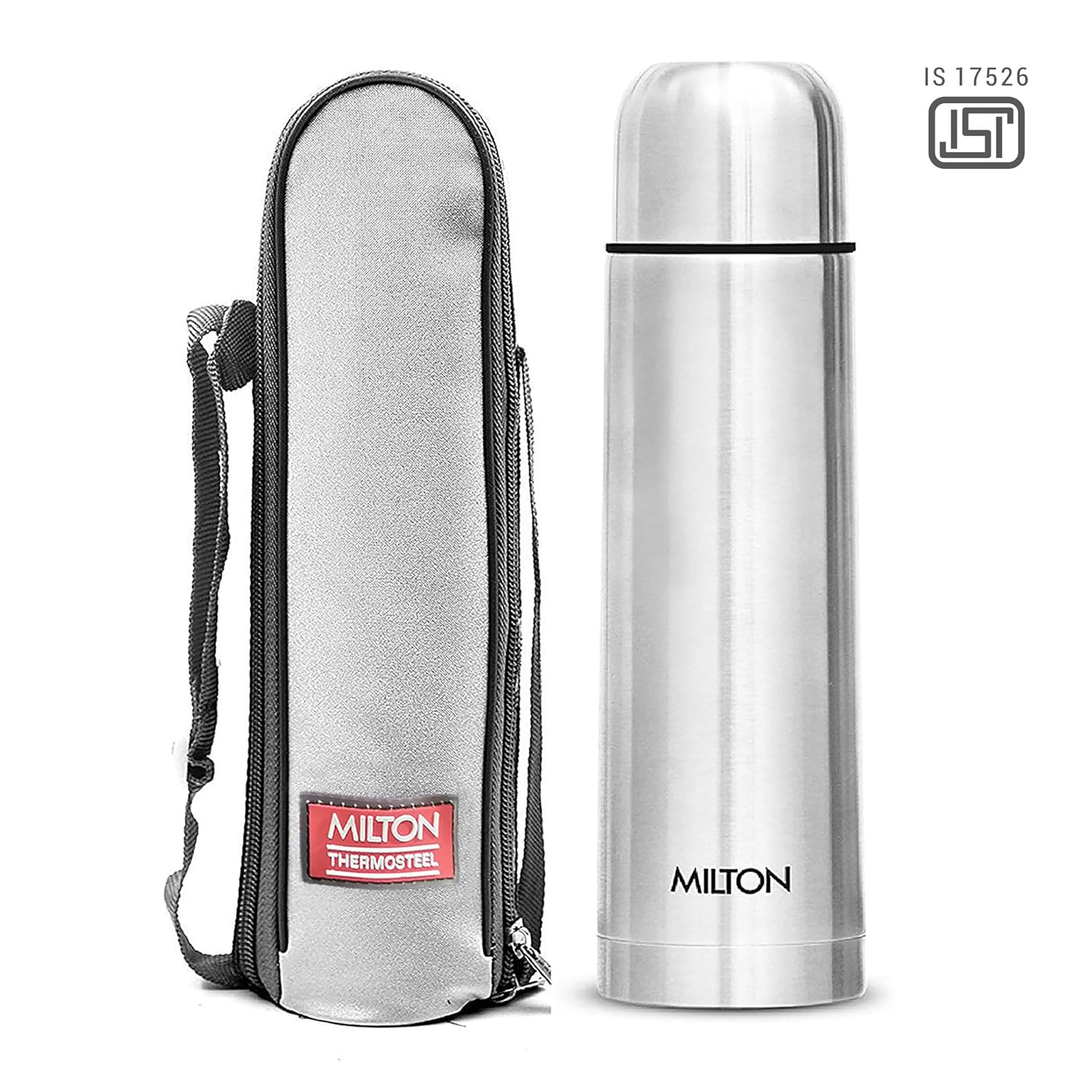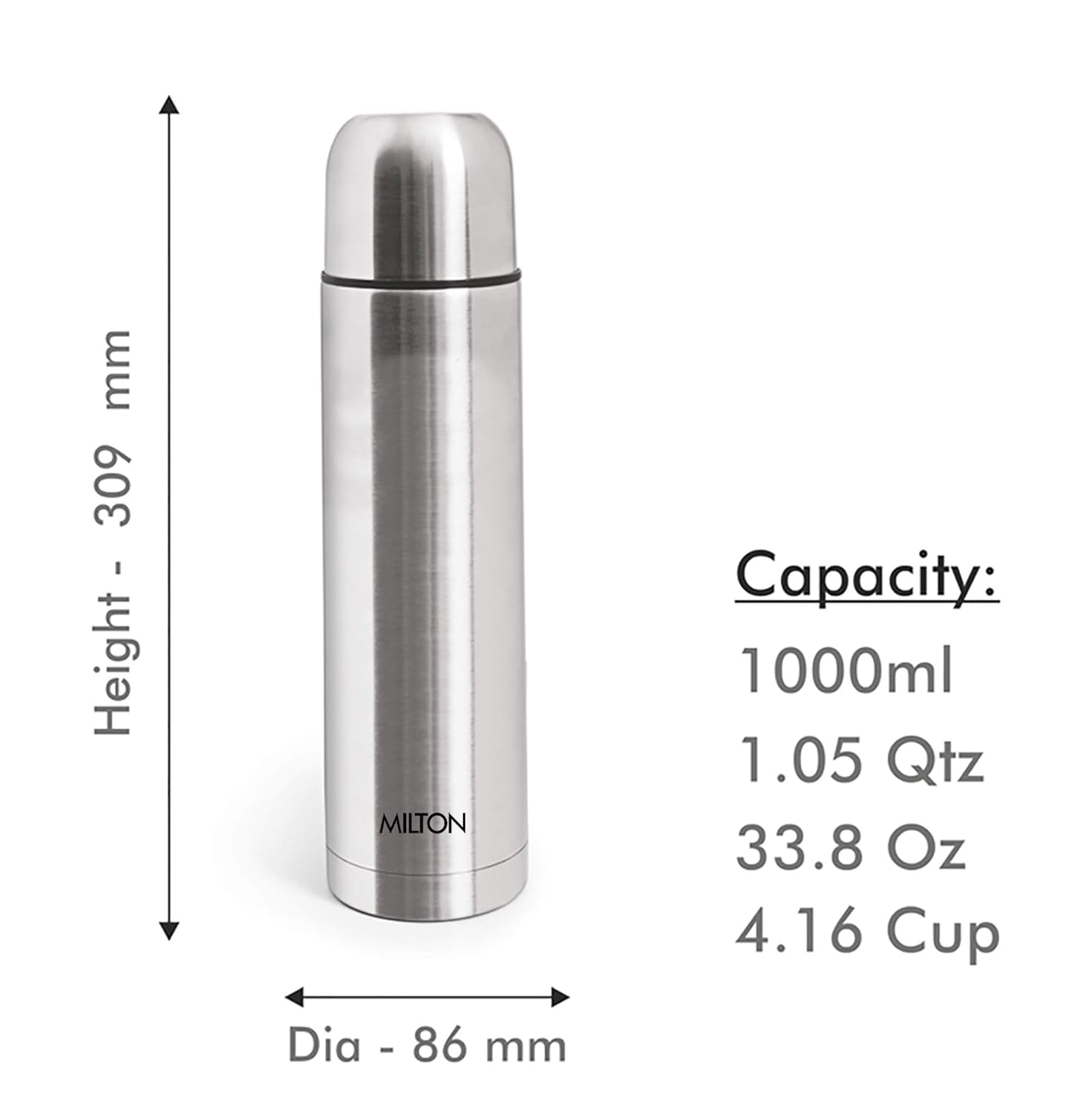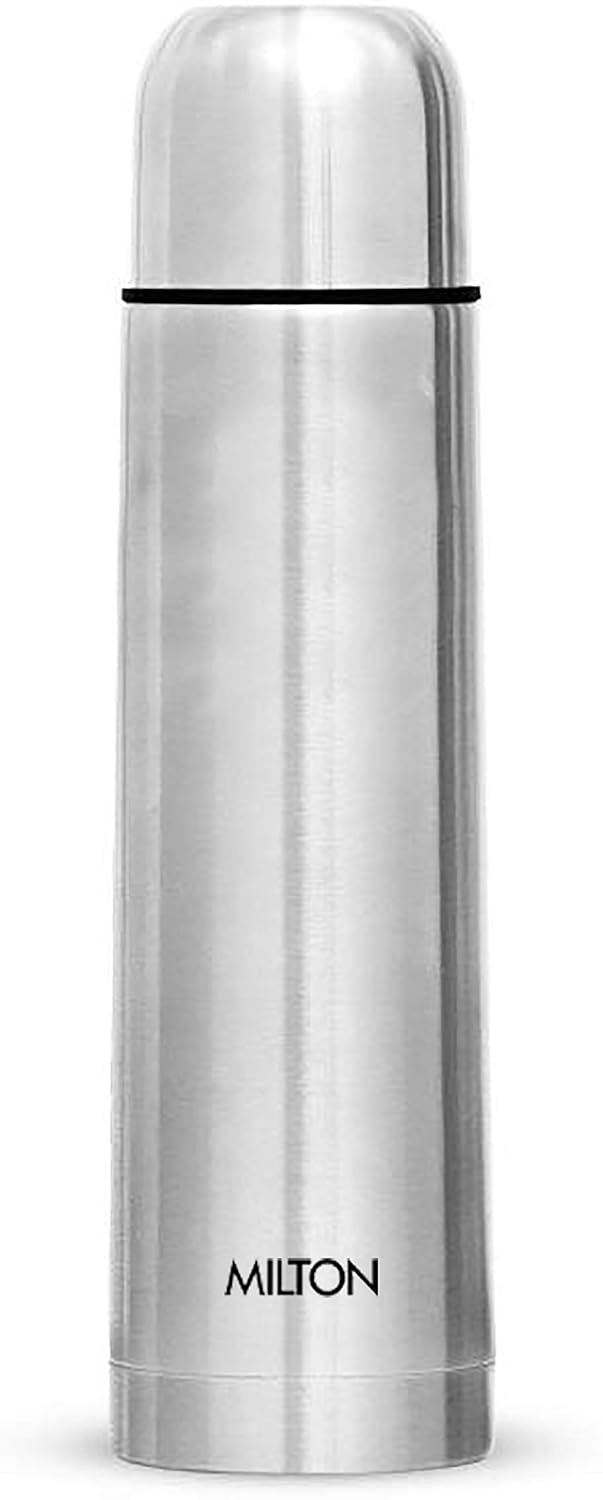 Milton Plain Lid 1000 Thermosteel Water Bottle 1 LTR, 24 Hr Hot and Cold I Leak Proof Lid, ISI Certified I Vacuum Insulated I for Office, Gym, School I Silver