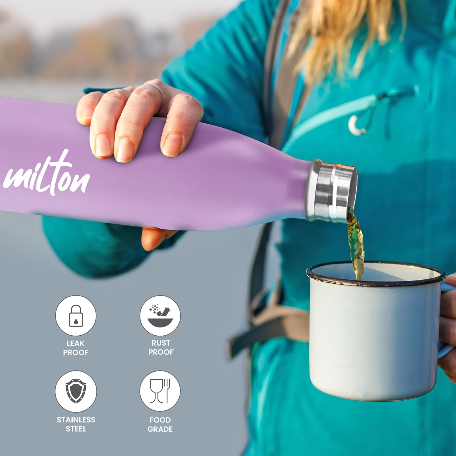 MILTON Shine 800 Stainless Steel Water Bottle 700 ml, Single Walled, ISI Certified I Leak Proof Lid, Rust Proof I For School, Office, Gym I Purple